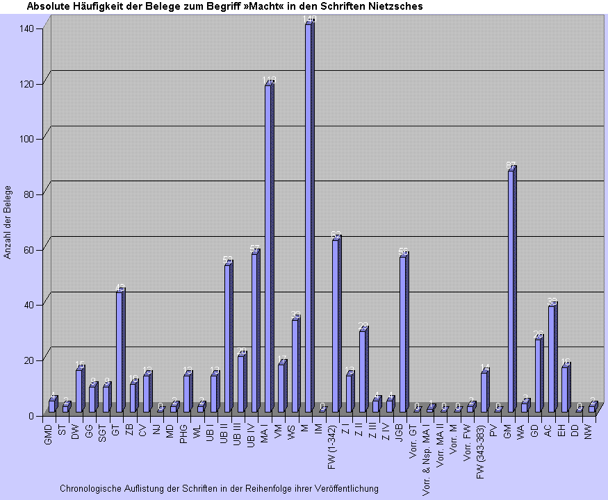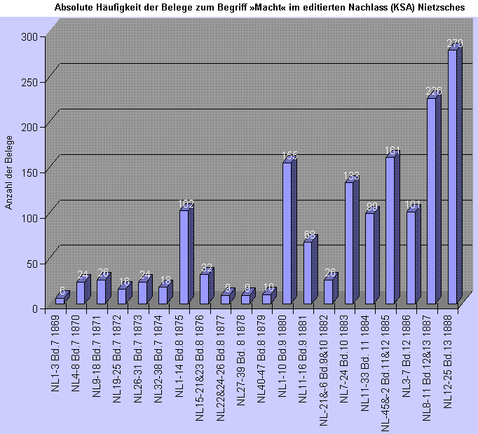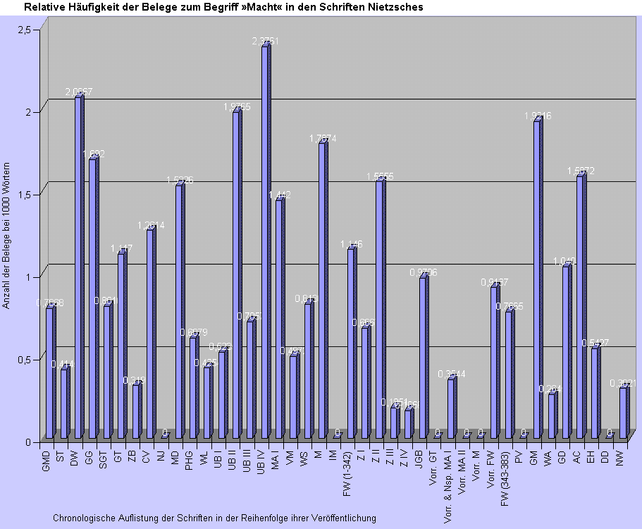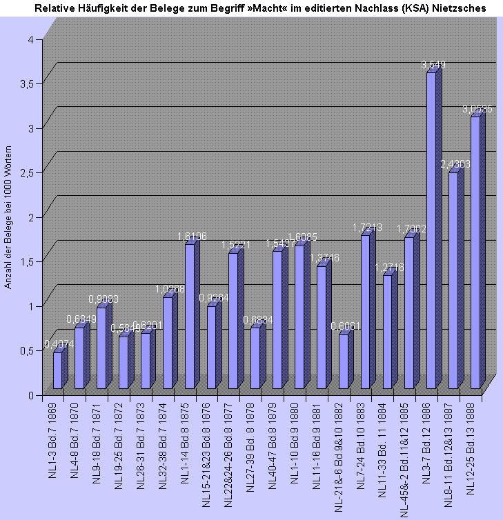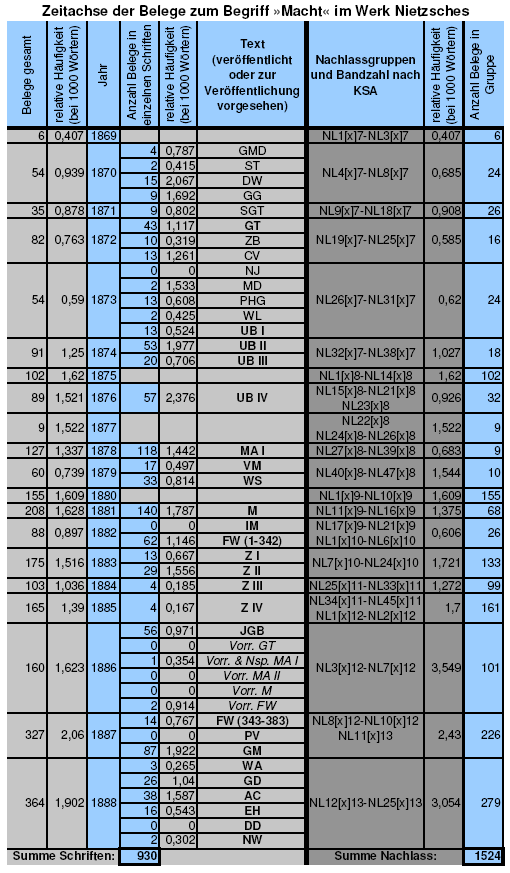 Statistische Daten für den Begriff »Macht« in den Texten Friedrich Nietzsches